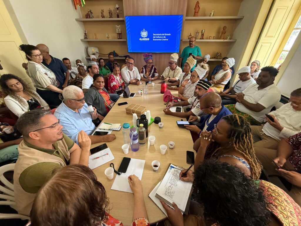 Representantes da Secretaria de Estado da Cultura e Economia Criativa (Secult), a Secretaria de Estado dos Direitos Humanos, a Fundação Palmares e a Universidade Federal de Alagoas se reuniram nesta quinta-feira (9) com lideranças e religiosos de matriz africana para alinhar os preparativos e a logística das celebrações do Dia Nacional de Zumbi e da Consciência Negra, comemorado em 20 de novembro.