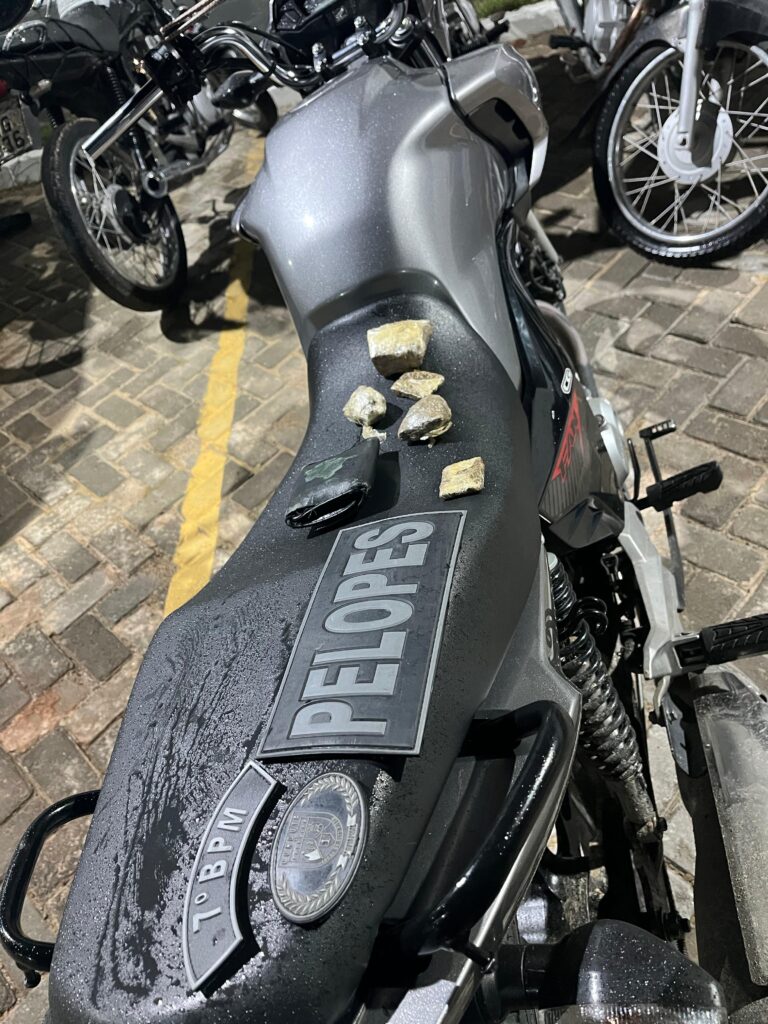 Por volta das 18h23min do sábado (24), a guarnição realizava patrulhamento de rotina em local amplamente conhecido por ser ponto de tráfico de drogas e avistaram um indivíduo em atitude suspeita conduzindo uma motocicleta. Ao perceber a aproximação da viatura, o suspeito empreendeu fuga em alta velocidade, desobedecendo a ordem de parada.