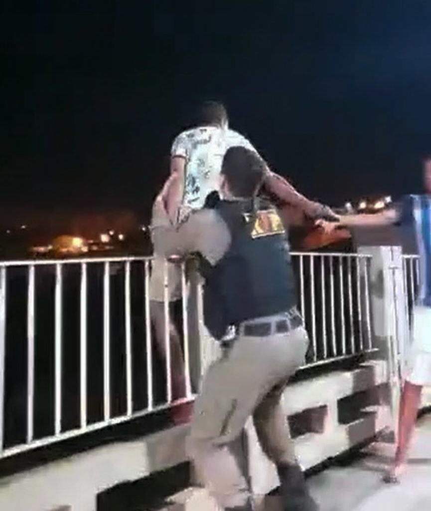 As guarnições 1 e 2 da RP foram acionadas via COPOM para averiguar uma denúncia de que um cidadão estava prestes a se jogar da ponte. De imediato as os militares foram ao local e encontraram o homem sobre o gradiado da ponte, ameaçando se jogar.