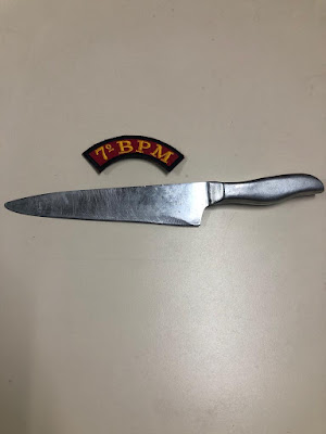 Os militares controlaram a situação e acionaram o socorro médico para prestar socorro a vítima do esfaqueamento. No local, o autor foi preso e com ele encontrado uma faca.