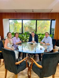 A prefeita de Carneiros, Ubiratania Santana, acompanhada dos secretários Geraldo Filho e Jussara Menezes, se reuniu com o governador de