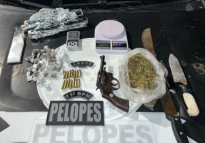 Um homem foi preso na noite desse domingo (10), por porte ilegal de arma de fogo e tráfico de drogas,