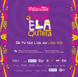 Neste Carnaval, a Secretaria de Estado da Mulher de Alagoas (Semu) leva às ruas a campanha “Fica na tua, deixe
