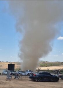 Um redemoinho foi registrado no município de Riachos, chamando a atenção de moradores que acompanharam o fenômeno à distância. As