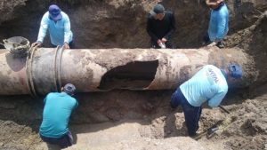 A adutora do Sistema Coletivo da Bacia Leiteira, que atende a 18 municípios, com diâmetro de 700mm, próximo a Olho