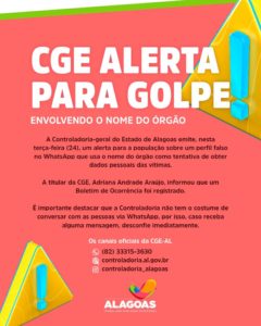 A Controladoria-geral do Estado de Alagoas emitiu, na terça-feira (24), um alerta para a população sobre um perfil falso no