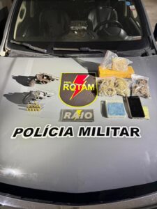 Equipes do Batalhão de Rotam, com o apoio da Companhia Raio, apreenderam duas armas de fogo, uma balança de precisão