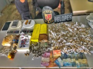 Três traficantes de 24, 25 e 26 anos foram presos pelas guarnições do Pelotão de Operações Especiais (PELOPES) e Radiopatrulha