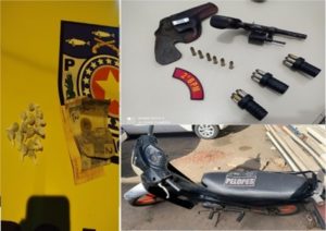 Guarnições pertencentes ao 9° Batalhão de Polícia Militar (BPM) apreenderam uma arma de fogo e drogas, durante ocorrências distintas, realizadas