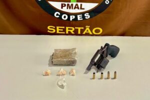 Uma arma de fogo e quase 300 gramas de entorpecente foram apreendidos durante uma intervenção da Companhia de Caatinga, na