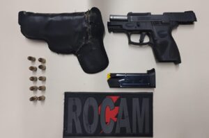 Um homem foi preso pela Polícia Militar por porte ilegal de arma de fogo após ser flagrado com uma pistola