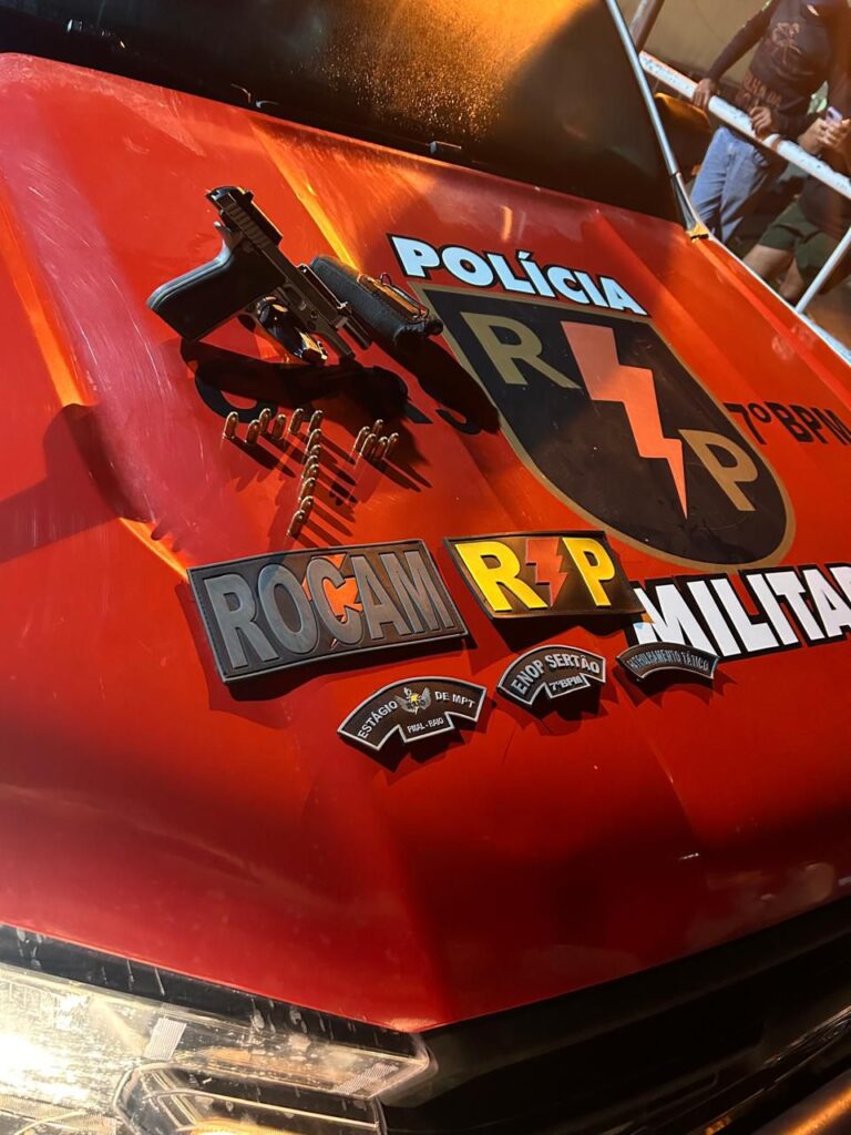 De acordo com a PM, os militares foram acionados por uma vítima que relatou ter sido ameaçada por um indivíduo armado. Segundo o denunciante, o suspeito teria apontado a arma em seu peito e feito ameaças de morte. Diante da gravidade da situação, a equipe se deslocou imediatamente até o local indicado, um estabelecimento comercial, onde realizou a abordagem do suspeito. No momento da ação policial, o homem teria lançado ao chão um coldre vazio.