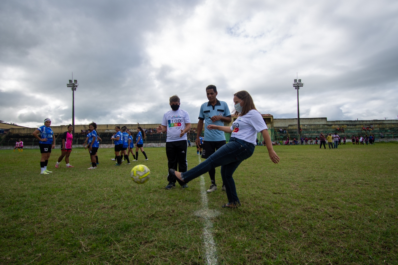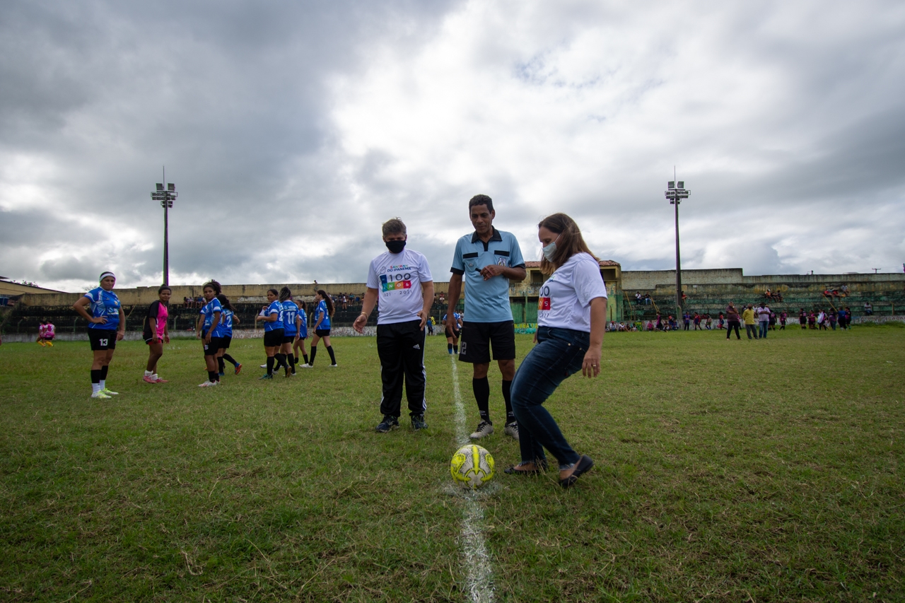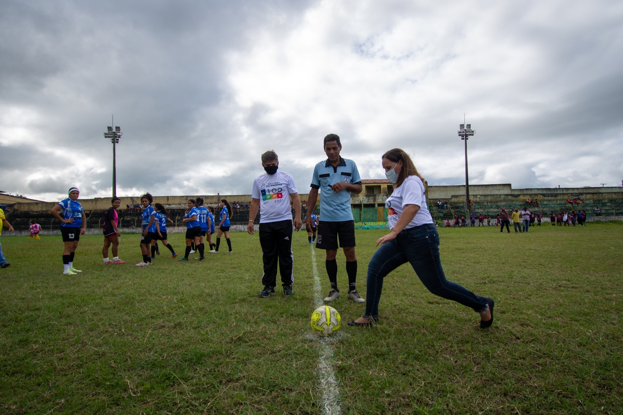 Após os discursos, Christiane Bulhões deu o pontapé inicial na partida de abertura da competição.