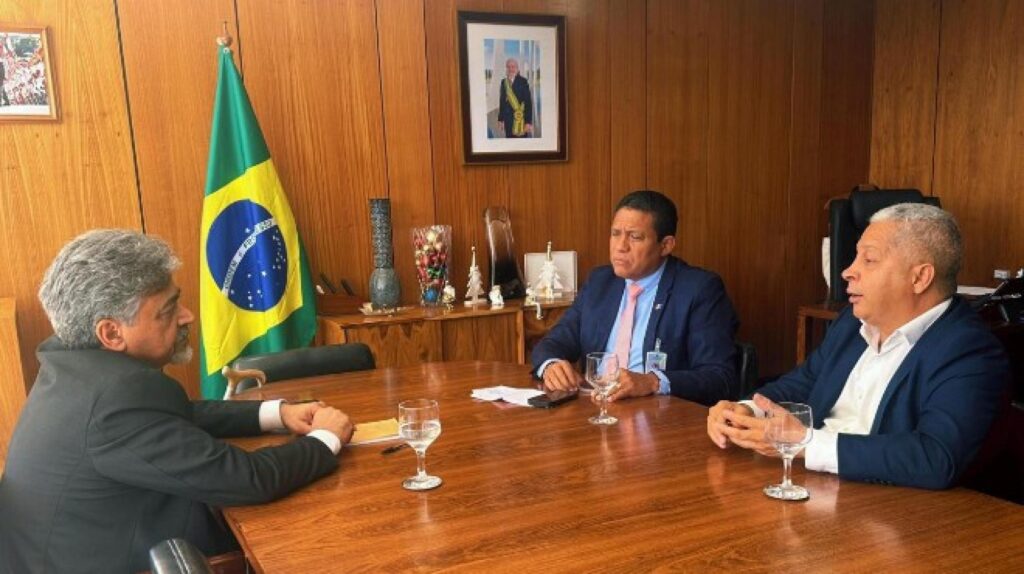 O secretário Executivo Marcos Rêgo (Serfi) e o arquiteto da Secretaria Especial de Assuntos Federativos (Seaf/SRI), Daniel Szwec, reuniram-se, nesta quarta-feira (8) com o presidente da União dos Vereadores de Alagoas (Uveal), Neto Bomfim, e o superintendente da entidade, José Ribeiro, para alinhar detalhes da vinda da Caravana Federativa do Governo Lula a Alagoas.