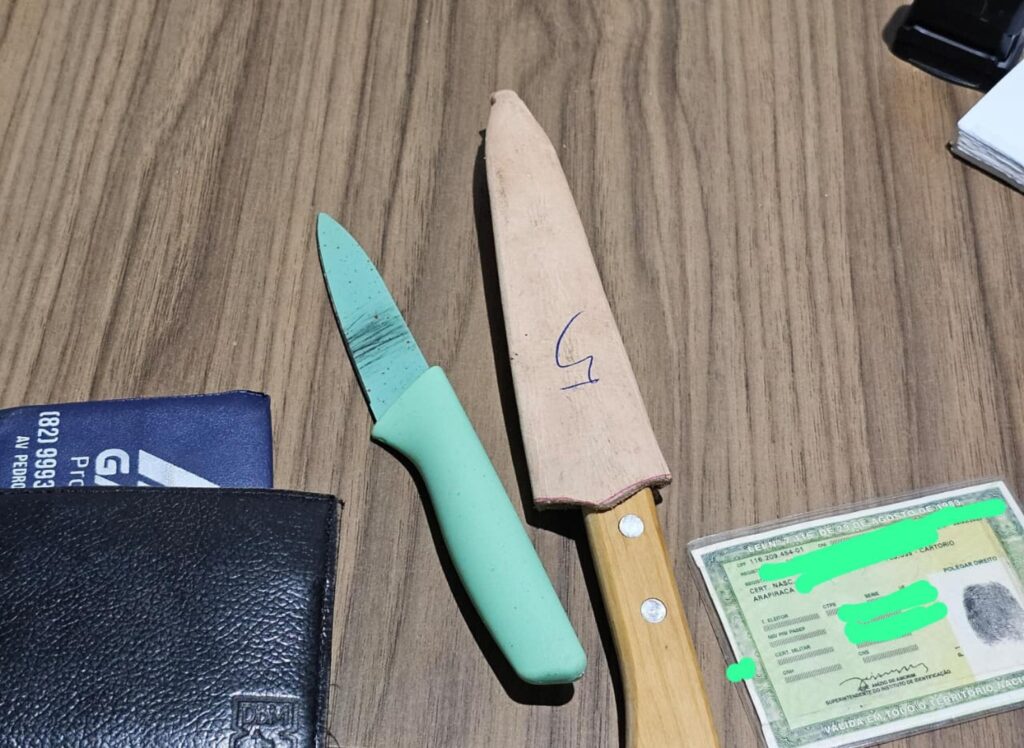 Na abordagem, os policiais constataram que ele portava duas facas tipo peixeira. Por apresentar comportamento agressivo e estar emocionalmente alterado, o homem foi conduzido algemado à Central de Polícia Civil de Arapiraca, onde permanece à disposição da Justiça.