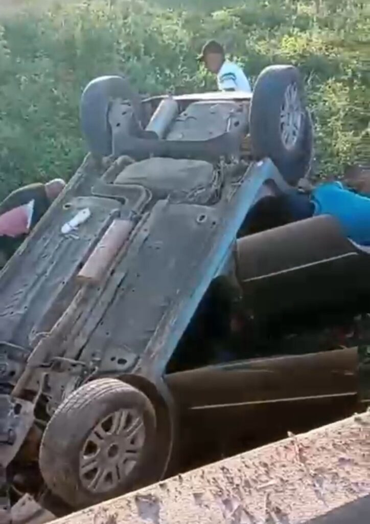 Um motorista perdeu o controle de um carro e capotou o veículo na tarde deste domingo (17), na ponte velha do Sítio Barro Vermelho, na zona rural de Poço das Trincheiras.