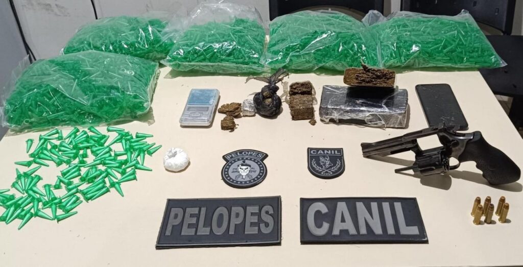 No total, foram recolhidos um revólver calibre 38, seis munições, um quilo de maconha e 90 gramas de cocaína. O material e o suspeito foram levados à delegacia, onde ficaram à disposição da autoridade policial.