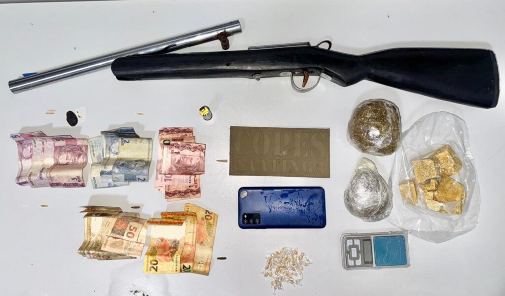 Na cidade de Piranhas, na noite de sábado (10), a Companhia Independente de Operações Policiais Especiais do Sertão (Copes) prendeu um homem de 30 anos pelo crime de tráfico de drogas. Com ele, foram apreendidos uma espingarda artesanal calibre 20; 214,6g de crack; 196g de maconha; R$ 392 em espécie, além de uma balança de precisão e um celular.
