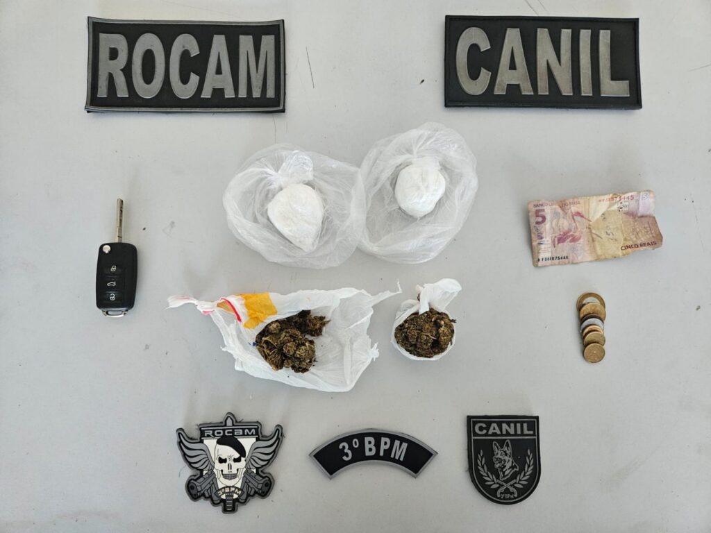 No bairro Nova Esperança, durante patrulhamento na Rua Djalma Mateus Santana, os policiais perceberam um veículo em fuga após o condutor notar a presença das viaturas. Durante o acompanhamento, os ocupantes do automóvel arremessaram porções de cocaína e maconha pela janela.