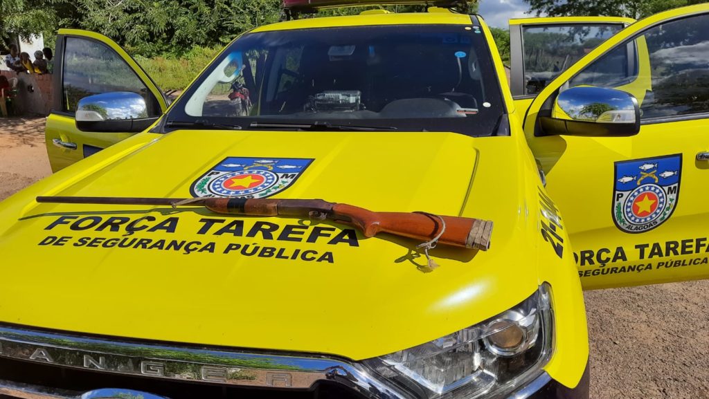 Um homem com as iniciais de N.B.S foi preso na tarde desta terça-feira, 27, depois de ser flagrado por uma guarnição da Força Tarefa do 9º – Batalhão da Polícia Militar, armado em uma estrada no Distrito de Lagoinha, município de Delmiro Gouveia no Sertão de Alagoas.