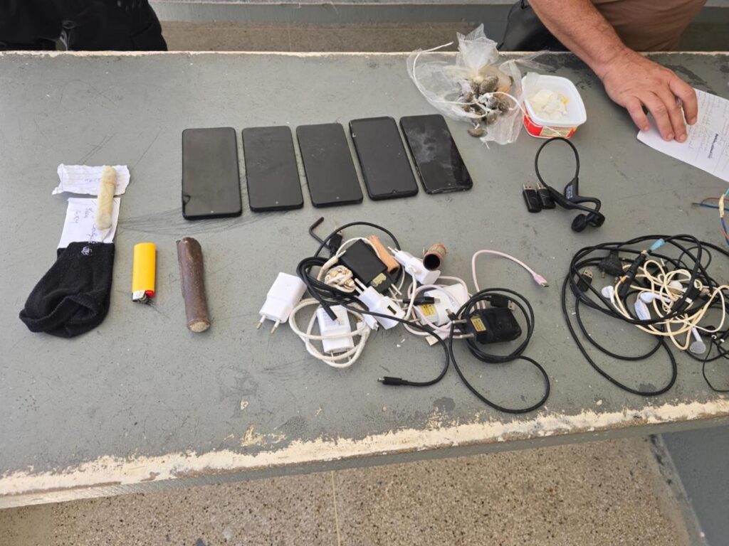 Foram apreendidos chips de celulares, carregador de celular, aparelhos celulares, fone de ouvido, pendrive e substâncias análogas à cocaína e maconha.