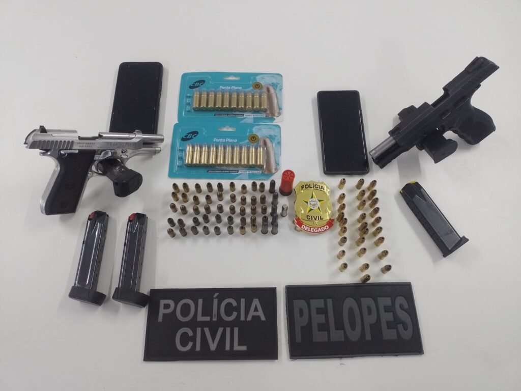 Por volta das 5h, a guarnição do Pelotão de Operações Especiais (PELOPES) e uma equipe da Polícia Civil saíram em diligências para dar cumprimento a um mandado de prisão. Durante a ação, foi realizada busca domiciliar na residência do acusado, ocasião em que os militares localizaram uma pistola TH9 calibre 9mm e 28 munições intactas.