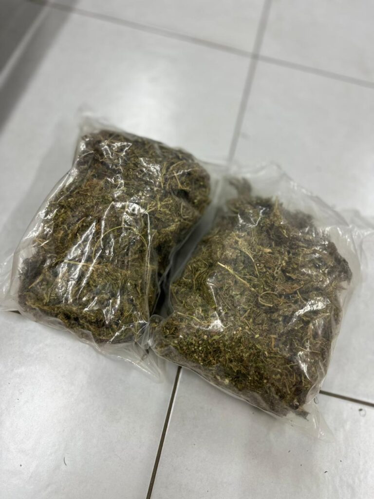 No total foram apreendidos 1,060 kg de maconha, 1 aparelho celular da marca Redmi.