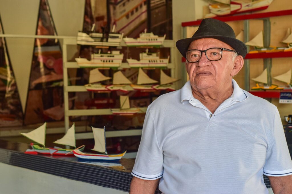 Natural de Piranhas, município do sertão alagoano, Rubério de Oliveira Fontes teve seu primeiro contato com o artesanato ainda na adolescência, se dedicando à carpintaria, ao construir canoas com outros jovens da sua idade. Posteriormente, ele conseguiu uma vaga como ajudante na oficina de carpintaria de Elias Barbosa, onde pôde aperfeiçoar suas habilidades e desenvolver seu talento. Hoje, aos 83 anos, Rubério continua a praticar seu ofício, sendo um dos principais representantes culturais do Baixo São Francisco. Com um estilo único, ele incorpora em cada peça traços de suas memórias afetivas, especialmente as do pai, que trabalhava como serralheiro na rede ferroviária. Suas criações são dignas de uma reprodução fotográfica, capturando com precisão os detalhes da ferrovia.