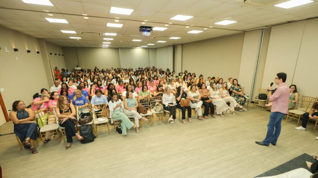 A programação teve início no domingo (23), com abertura oficial, falas das autoridades, lançamento do e-book “Práticas Exitosas – Recomposição das Aprendizagens”, construção de uma nuvem de ideias com as expectativas dos participantes e um jantar dançante, marcando um momento de acolhimento e integração entre os profissionais envolvidos.