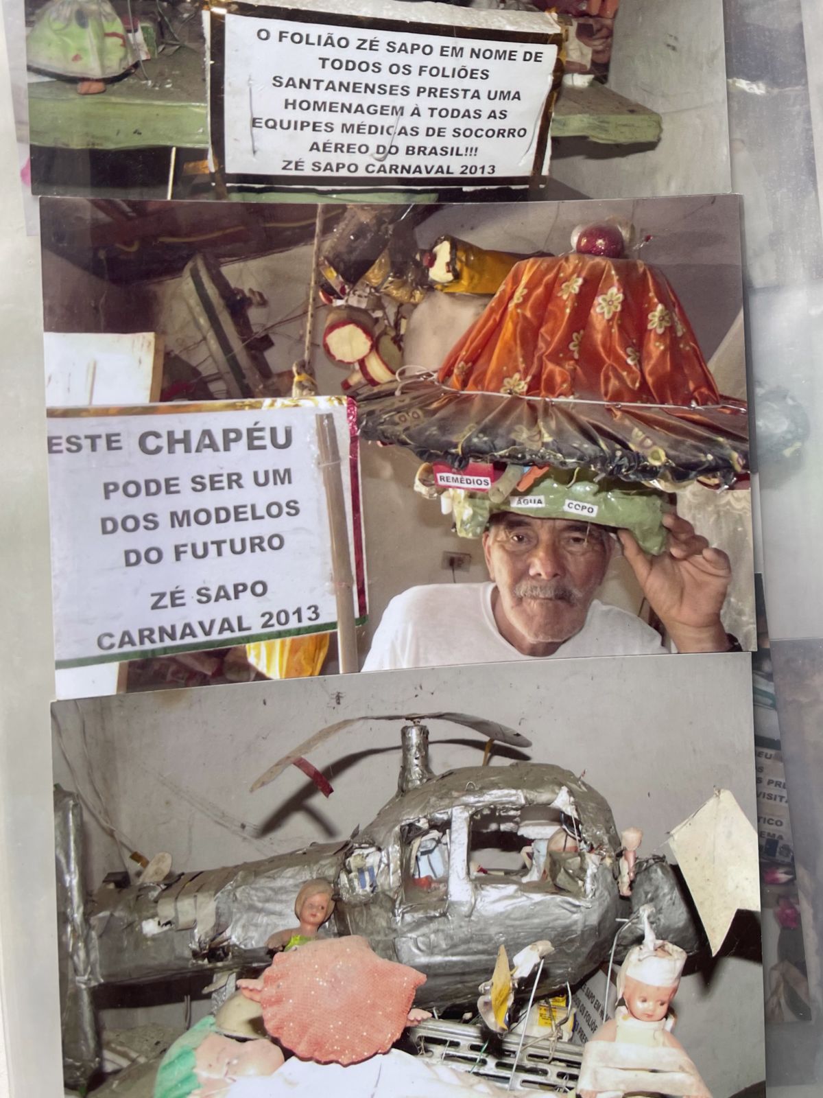 Em 2013, em uma de suas alegorias, Zé Sapo criou um helicóptero para homenagear as equipes médicas de socorro aéreo do Brasil. Em outra fantasia, o folião produziu um chapéu que armazenava água, copos e remédios. “Pode ser um dos modelos do futuro”, dizia a mensagem.